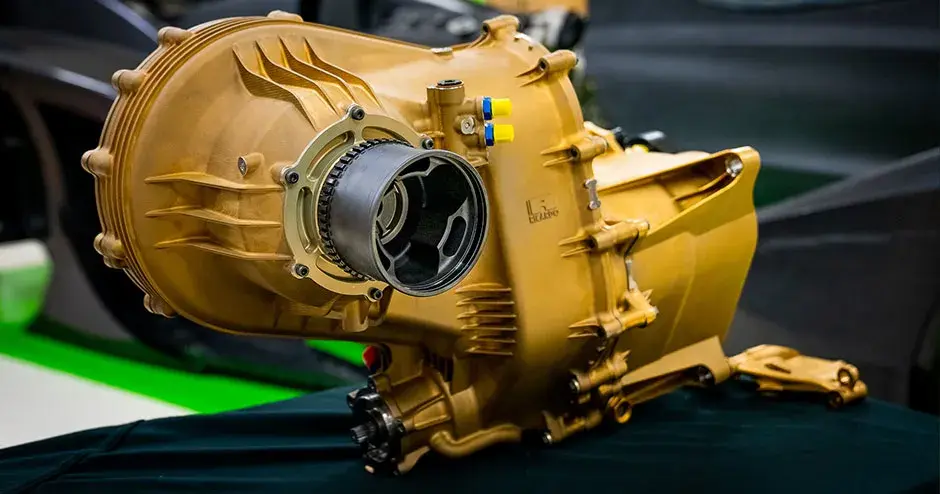Secondo Adam Waterhouse, ingegnere capo alla Rodin Cars, effettivamente qualsiasi componente in metallo, bulloni esclusi, viene stampato in 3D. “Ogni supporto del cambio è stato stampato”, ha dichiarato Waterhouse. “Si tratta di una quantità enorme di parti, di un vero e proprio sistema stampato”. La scatola cambio finale in titanio è stampata in LaserForm Ti Gr23 (A) e pesa solo 68 kg, inclusi i particolari interni in acciaio.