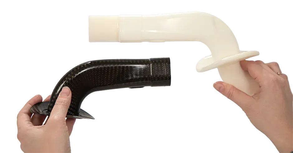 Accura AMX Durable Natural, la resina SLA ad alte prestazioni e resistenza eccezionale di 3D Systems, è formulata in modo da sopportare flessioni e piegature ripetute, come nell’esempio di questo mandrino che può essere rimosso in un unico pezzo da tubi spiralati in fibra di carbonio.