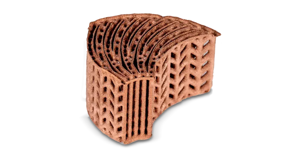 Il materiale CuCr1Zr (A) certificato è una lega di rame comunemente utilizzata, caratterizzata da resistenza elevata ed eccellente conducibilità termica ed elettrica. È possibile utilizzare il trattamento termico come metodo di post-elaborazione per migliorare la resistenza e la conducibilità delle parti prodotte con questa lega. I clienti che utilizzano questo materiale possono collaborare con l’Application Innovation Group (AIG) di 3D Systems, che vanta una consolidata esperienza nella regolazione dei parametri di trattamento termico per soddisfare i requisiti specifici delle applicazioni. La combinazione di resistenza e conducibilità elettrica rende la lega CuCr1Zr una soluzione ideale per i sistemi di gestione termica complessi nonché per le applicazioni elettriche che svolgono anche una funzione strutturale, come gli scambiatori di calore, i sistemi di raffreddamento, le bobine di induzione e i contatti elettrici.